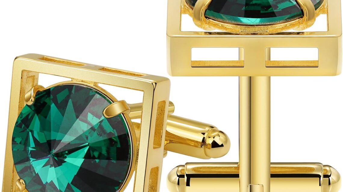Gold Cuff Links Mens, TAIGRAMA Crystal Cufflinks for Men Brass Cuff Link Wedding Business Birthday Gift for Groom Father Husband Boyfriend