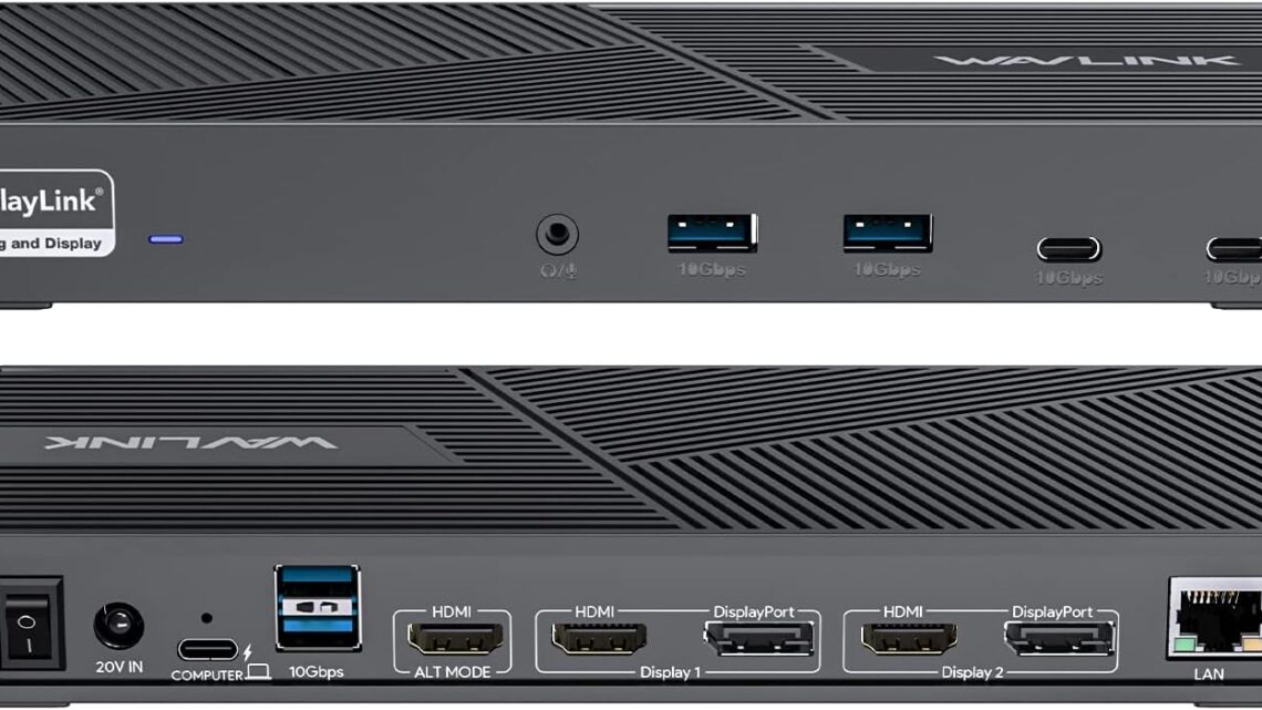 WAVLINK DisplayLink Docking Station Triple Monitor 4K@60Hz for 3 Monitors, 100W Charging for Thunderbolt 4/3, USB C M1 M2 M3 M4 Mac/Windows/Chrome – 3 HDMI, 2 DP, 6 USB Ports, 160W Power, LAN, Audio