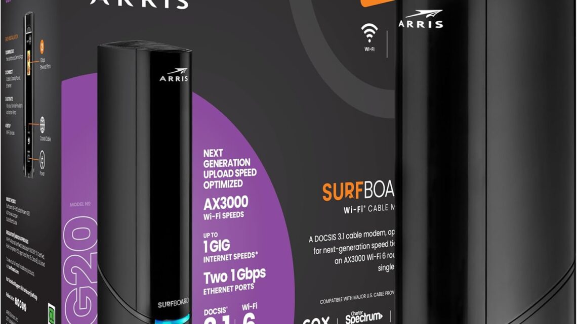 ARRIS (G20) – Cable Modem Router Combo – Fast DOCSIS 3.1 Multi-Gigabit WiFi 6 (AX3000), Approved for Comcast Xfinity, Cox, Spectrum & More, 1.0 Gbps Max Speeds, Next-Generation Upload Optimized