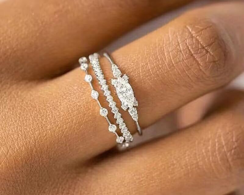 ✦RING SET✦: One order includes 3 pcs different Style thin ring, diamond ring, Curved ring.This sterling silver ring set is perfect for an engagement ring or wedding band for a more elegant and fashion look