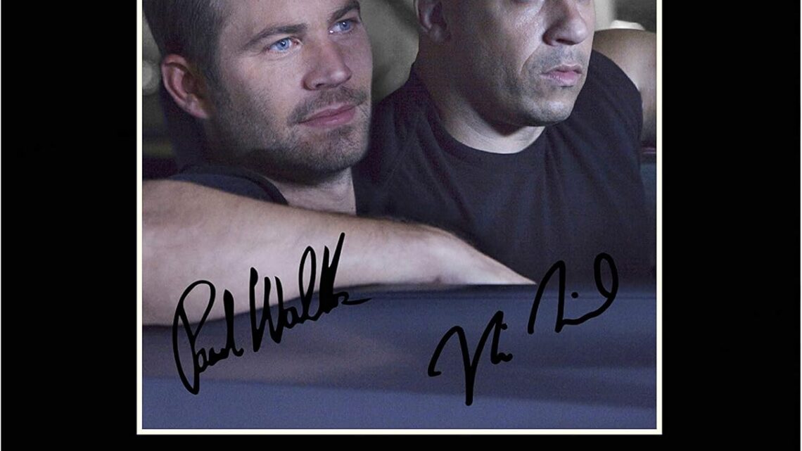 Professionally mounted display of Paul Walker and Vin Diesel with their printed autograph.Our bevel cut acid free mounts are 1.5mm in thickness and can be fitted into a 10×8 inch frame. We use the latest state of the art photo processing lab equipment for the highest quality prints. Perfect gift for any Paul Walker, Vin Diesel or Fast and Furious fan. Great piece of memorabilia at an affordable price.