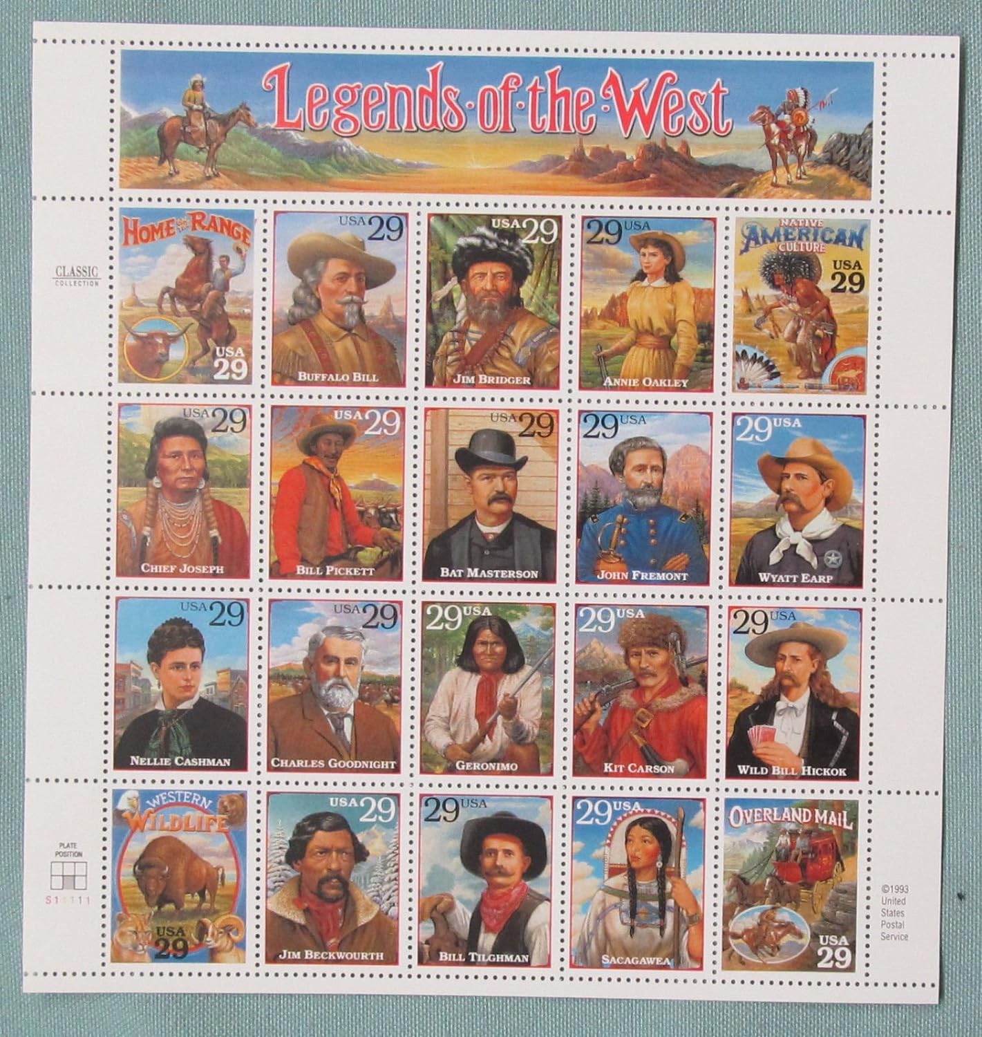 Legends of the West Complete Pane of Twenty 29 Cent Stamps Scott 2869 By USPS