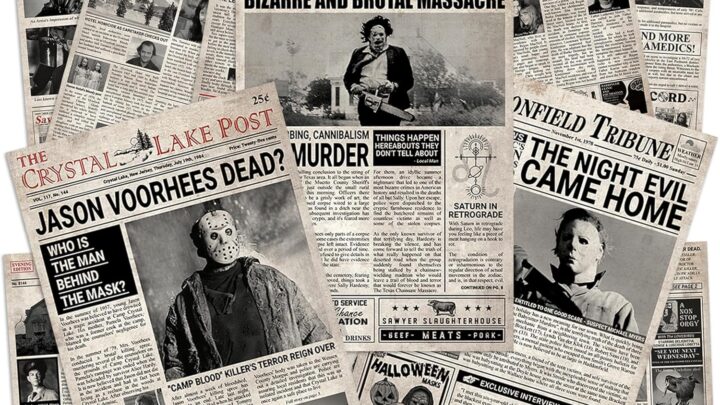 AMD PRINT 12 Pcs Newspaper Horror Posters (8”x12”), Horror Decor, Halloween Poster, Scary Posters And Horror Wall Art Decor, Perfect Retro Bedroom Decor And Vintage Horror Decor – Unframed