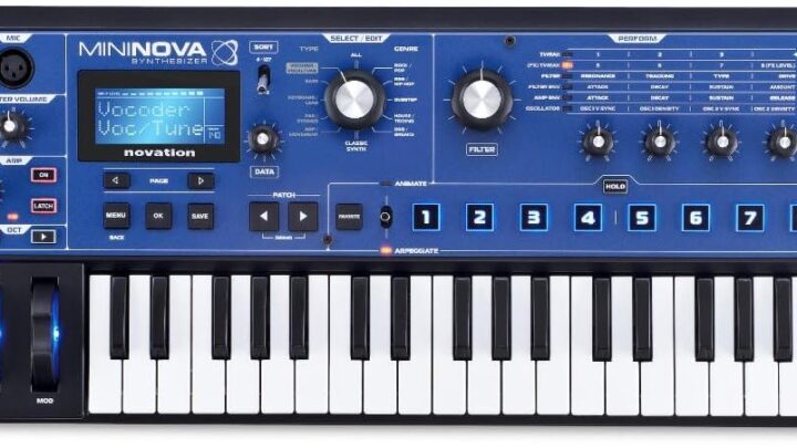 Novation MiniNova Analogue Modelling Compact 37 Mini-key Synth – Tough, compact, powerful mini-synth with pitch-correcting effect vocoder, 256 onboard sounds and five effects per voice layering Blue
