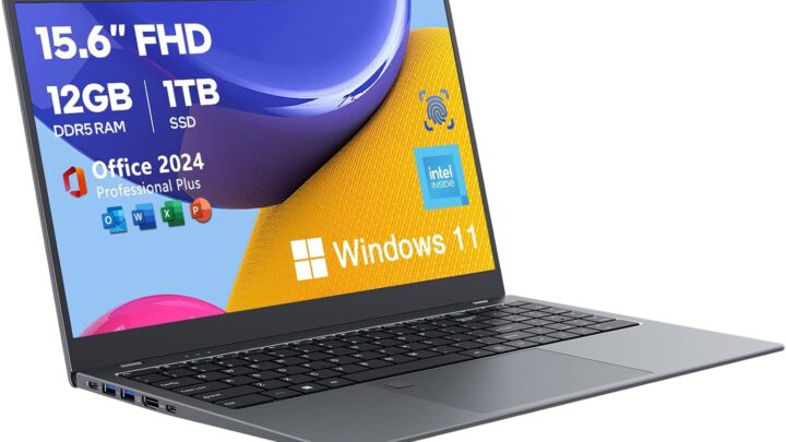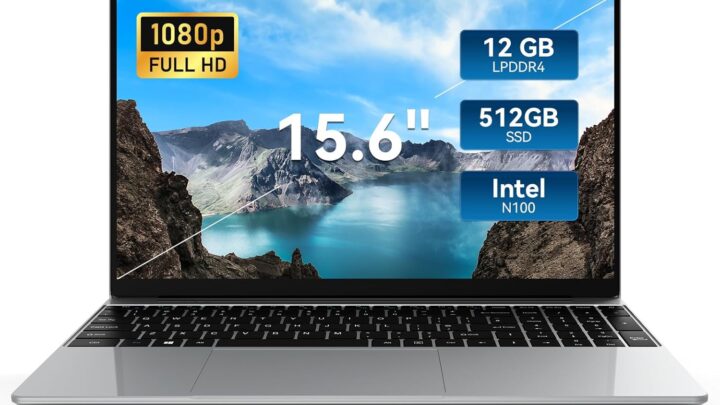 15.6 Inch Laptops, Windows 11 Laptop Computer with 12GB RAM 512GB SSD, Celeron N100 Quad-Core(Up to 3.4GHz), FHD IPS 1920×1080, HDMI, Type-C, USB 3.0, WiFi, TF Card Reader