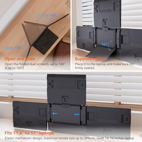 [Adjustable Back Bracket & Versatile Rotation]- Designed with a sturdy back bracket rotate up to 165°, the quad screen extender stays stable during use. Rotate the side and up screens up to 165° for flexible viewing angles. Supports extension and duplicated modes, making it ideal for multi-person meetings, stock analysis, coding, or remote collaboration.