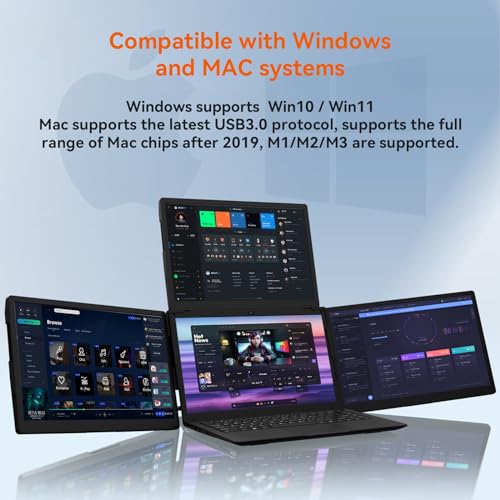 [Wide Compatibility with Win/Mac (M1/M2/M3)]–This portable quad monitor is compatible with 13.3-16 inch laptops, supporting Windows (Win10 and later) and macOS (2019 and later, including M1/M2/M3 chipsets). Equipped with USB-C ports, it offers seamless connection options. Ensure compatibility and laptop size before purchase for the best experience.
