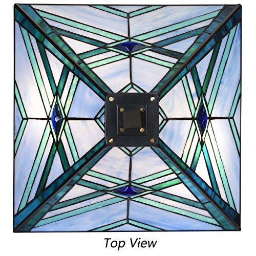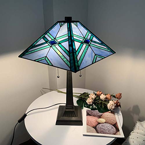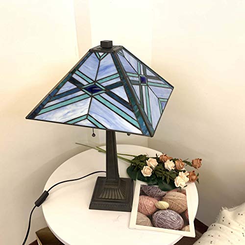 Bieye L10814 Mission Tiffany Style Stained Glass Table Lamp for Reading Working Decorating, 20″ W x 22.5″ H, Blue