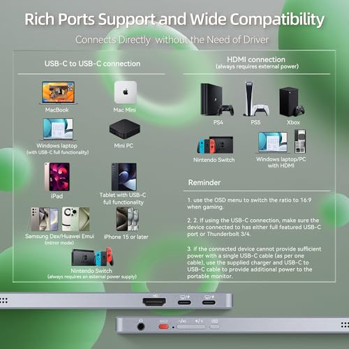 【Versatile Connectivity】Intehill 4k Portable Monitor Features Dual USB-C Ports, a HDMI Port, and a 3.5mm Audio Jack for Seamless Connection To Various Devices. HDMI Ensures Compatibility with Devices That Only Support Traditional Video Output.