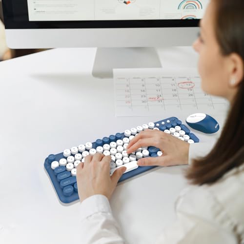 【Unique Appearance and Texture】 This colorful keyboard and mouse combo is made of renewable ABS plastic material, which is cute and environmentally friendly, and has a unique touch with its frosted texture. The medieval typewriter design is matched with punk round key caps, and the two colors complement each other, presenting a simple and retro unique style, allowing users to enjoy its retro appearance while getting a comfortable operating experience