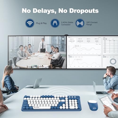 【Wireless Keyboard and Mouse Combo】 This retro keyboard and mouse combination uses a 2.4GHz USB wireless receiver with a transmission distance of 33 feet (10 meters). Whether in a spacious office or a comfortable living room, you can move freely and enjoy the convenience of wireless. Just plug in the USB receiver without complicated installation steps. It is plug-and-play, stable and efficient, and suitable for home, office and gaming use
