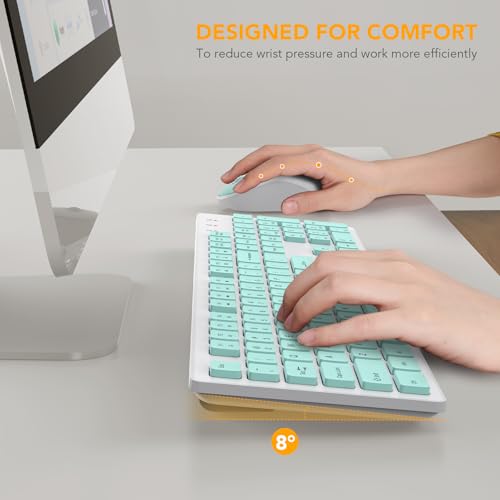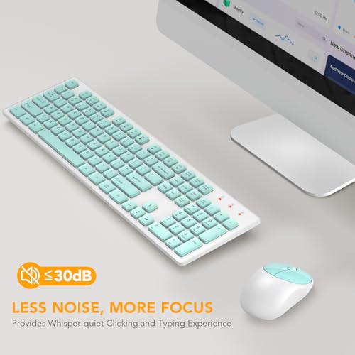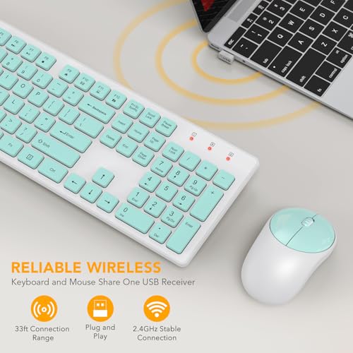 Wireless Keyboard and Mouse, WisFox Full-Size Wireless Mouse and Keyboard Combo, 2.4GHz Silent USB Wireless Keyboard Mouse Combo for PC Desktops Computer, Laptops, Windows (Teal Green)